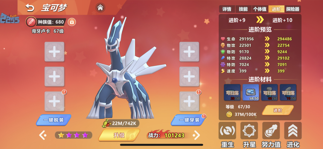 进阶也是提升宝可梦属性的,消耗对应材料即可。