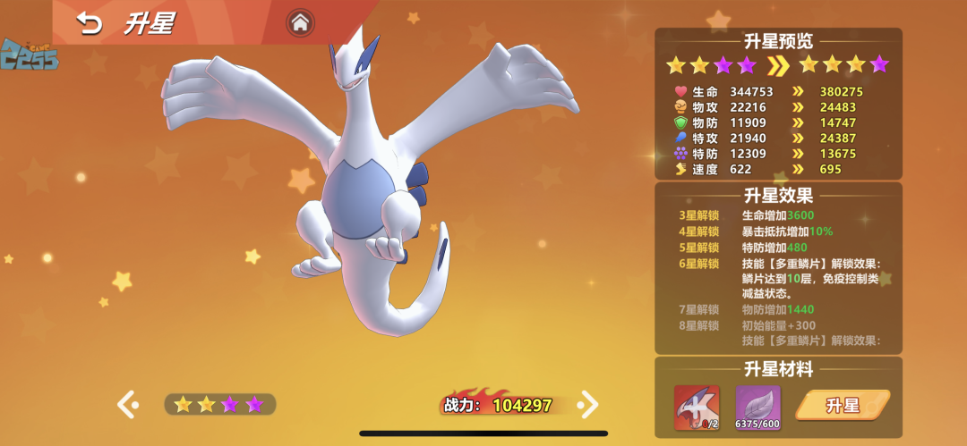 升星可以大幅度的提升宝可梦的属性,并获得额外的能力,使用相同进化链中的宝可梦和银叶子进行提升。