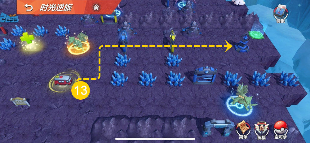 13、沿着13号路线走,点击蓝色机关。
