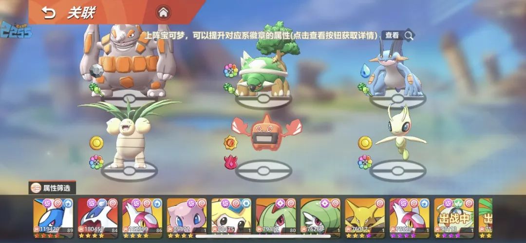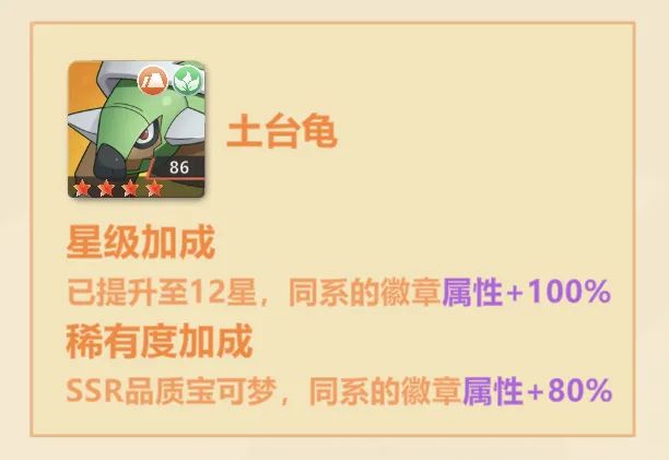 部分宝可梦是同时拥有2个徽章对应的属性的,如上图,这些宝可梦关联后左侧会有2个徽章图标,那么就能触发两个徽章的加成,提升更高的战力。