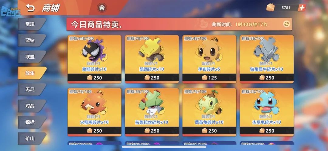 那么放生商铺里都有什么SSR宝可梦的碎片呢?